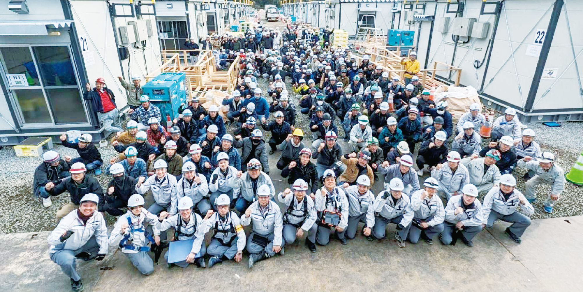 「現場の條件が悪いからこそ、健康と安全が守られる働きやすい環境を」と、交替勤務を可能にするため協力會社に技能者の派遣をお願いした結果、大和ハウス工業が擔當する3つの現場に、全國からのべ約4,000人の技能者が集結。現場では、避難所の方から「ありがとう」という聲をかけていただくことがあり、それを聞いた社員や技能者からは「頑張りましょう!」と使命感あふれる聲があがった。