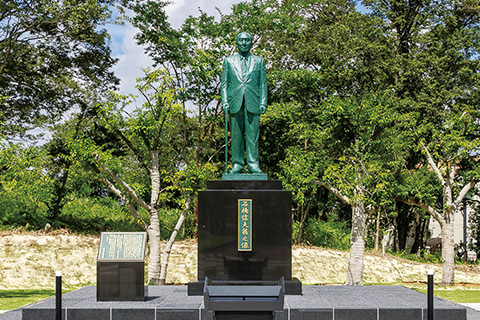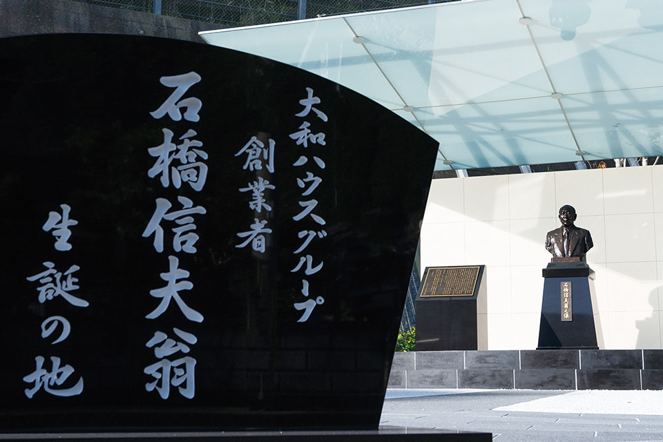 立像は、1993年ごろの石橋信夫をモデルに、在りし日の姿を現(xiàn)しています。生誕の地である奈良?吉野と大和ハウス工業(yè)本社を望み、大和ハウスグループの未來を見守っています。