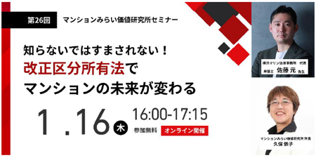 1月16日(木) 無料WEBセミナー(マンションみらい価値研究所主催)