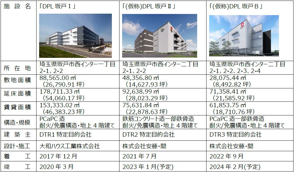 【「DPL坂戸Ⅰ」、「(仮稱)DPL坂戸Ⅱ」、「(仮稱)DPL坂戸B」建物概要】