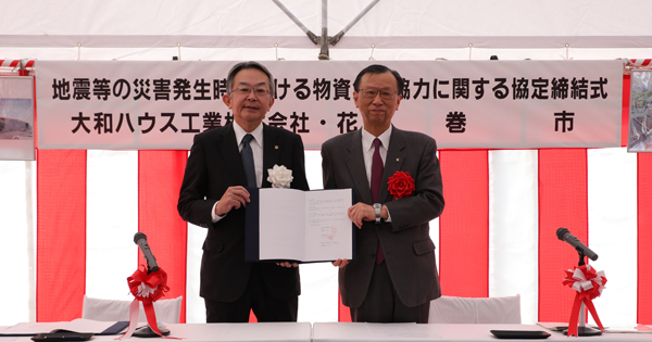 左側(cè):大和ハウス工業(yè)株式會(huì)社 取締役常務(wù)執(zhí)行役員 浦川 竜哉 右側(cè):花巻市長 上田 東一 |