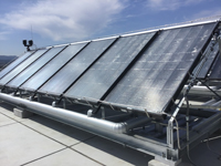 (2)太陽光発電システム?太陽熱集熱パネルの設置 太陽光発電システム100kWとリチウムイオン蓄電池10kWhを連攜させ、発電した電力は建物內で全て自家消費しています。あわせて、太陽熱集熱パネルを設置し、太陽熱を給湯利用することで給湯エネルギーの使用量を削減しています。 |