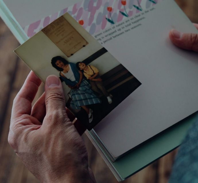 古いアルバムを取り出し、落ちる數枚の寫真。