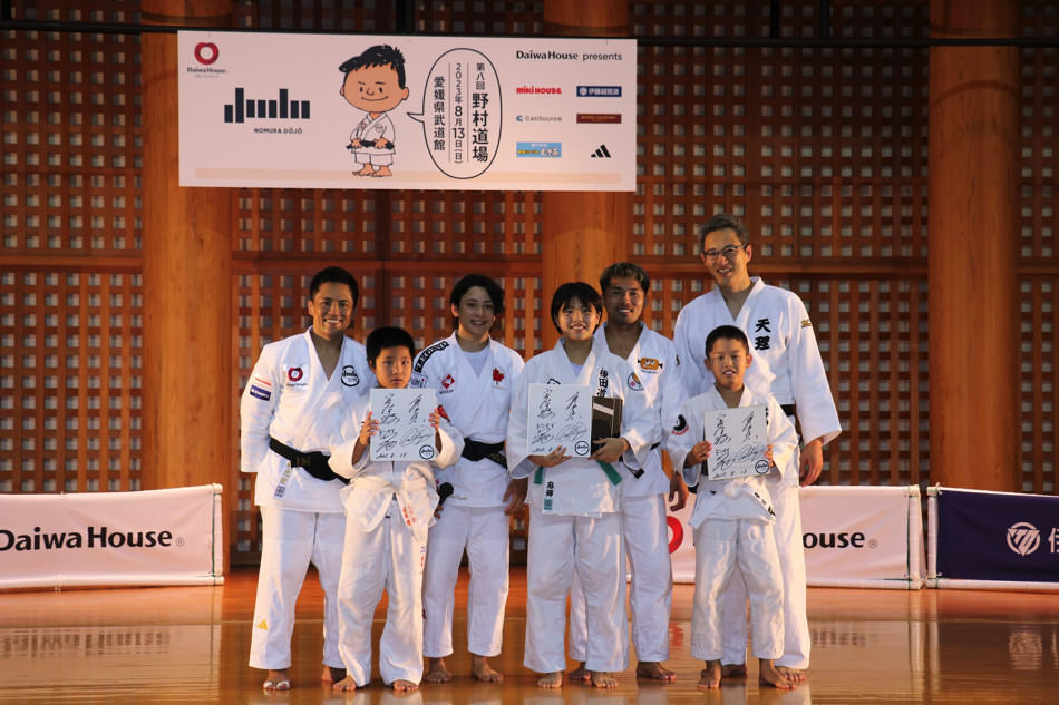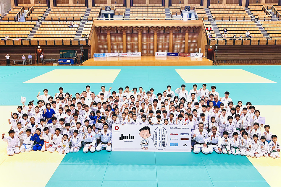 「DaiwaHouse presents 第八回 野村道場」が2023年8月13日(日)、四國では初開催となる、愛媛県武道館(松山市)で開催されました。県內外から約170名の小中學生と約300名の観覧客や保護者の方々が見守るなか行われました。當日は、特別講師の穴井隆將さん(天理大學柔道部監督)、スペシャルゲストに現役世界王者の出口クリスタ選手、You Tuberで自身も2013年 全日本選抜柔道體重別選手権大會で優勝経験のあるドンマイ川端さんが登場しました。