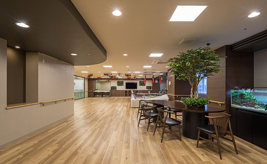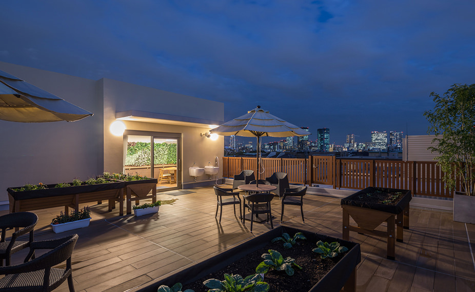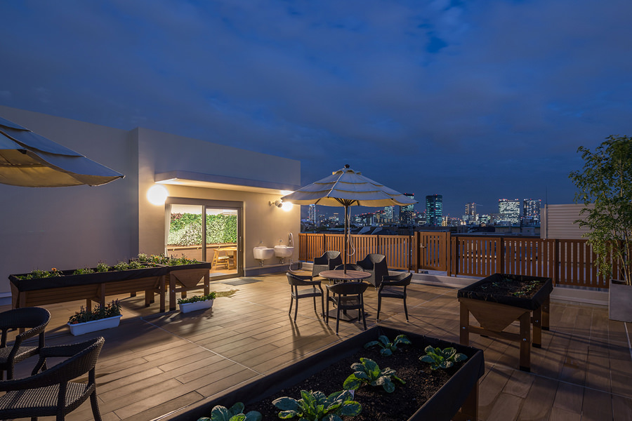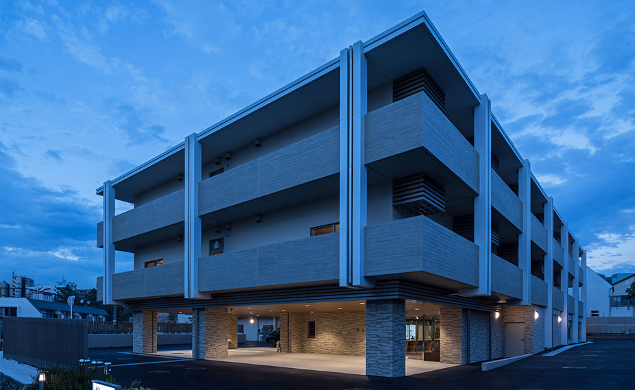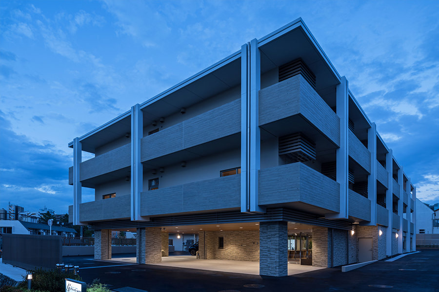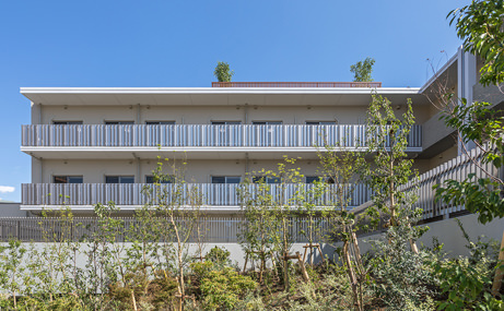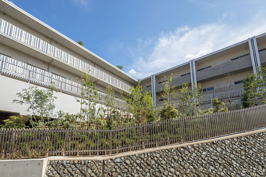 計畫地は無造作ながけ地の斜面に20m程度の高木がうっそうと生えている森のような狀態(tài)で、暗くじめじめとしており、夜はかなり危険で周辺住民はあまり近寄らない敷地であった。そこで敷地の特性を利用して魅せる斜面としつつ、建物配置をセットバックさせ、斜面下の建物、道路に光を取り込む計畫とすることで、周辺環(huán)境を陰から陽へと変えた。