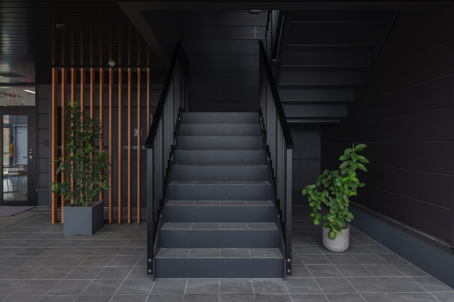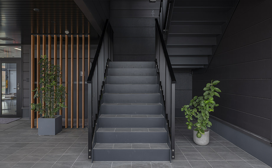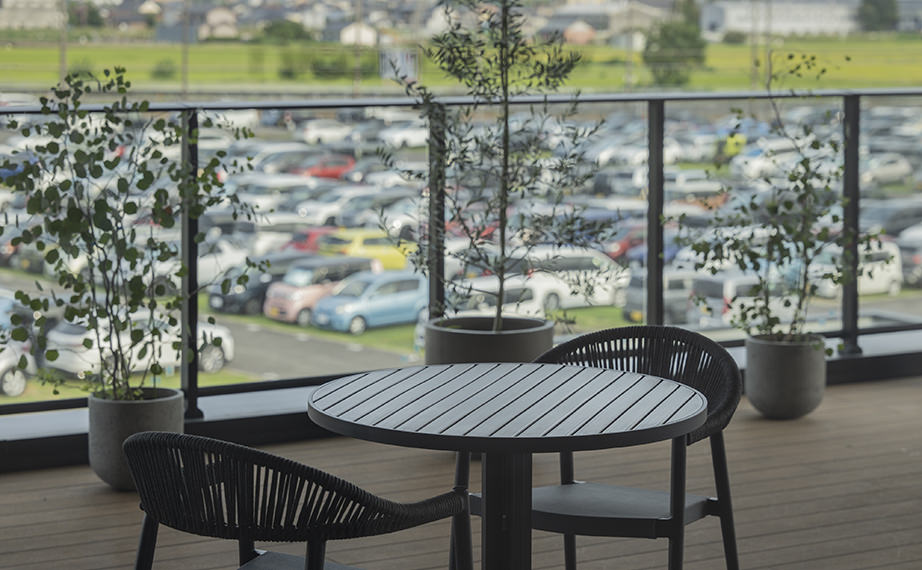 本プロジェクトは、工作機械メーカー本社工場のロッカー施設整備計畫です。毎日500名近くの従業員が利用するこの施設は、著替えるだけではなく『コミュニケーションが生まれる場』をつくる事をコンセプトにテラスを計畫しました。このテラスは、各階に設けられそれぞれの階で目的を分けています。1階はバスの待合所として扱われ、3階では研修前後のリフレッシュスペースとしても機能しています。工場敷地內の北東角に計畫した厚生棟は、隣接する工場棟とファサードデザインの差別化を図り、テラスでの賑わいと共に今後工場が変わっていく事を周辺へ発信しています。