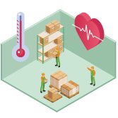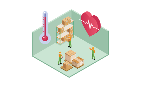 暑さ指數や溫濕度を管理して、働く人の健康と商品の品質を守ります。