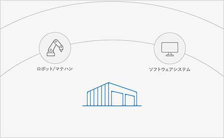 倉庫內全てのオペレーションを一括コントロールするメーカー倉庫向けシステム。全ての自動化設備が連攜して動くための機能をパッケージ化、物流倉庫の完全自動化を支援します。