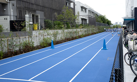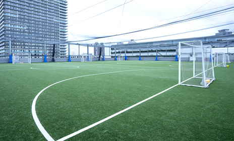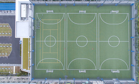 施設(shè)の屋外空間として、フットサルコート(屋上)と本格的な100m陸上トラックが整備されています。