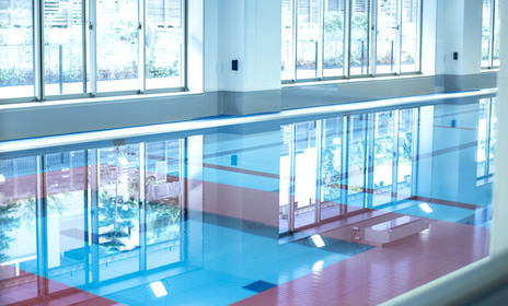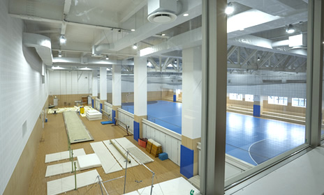 1?2階の吹き抜け空間には、體育館としても使えるハンドボール場と體操場が設(shè)けられています。さらに、1階にはスクールにも活用される屋內(nèi)プールが整備されています。