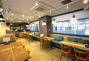 1階にテナント入居している飲食店。店內(nèi)からは運動場の様子が見えます。また、敷地の裏側(cè)には屋外バーベキューが楽しめるスペースがあり、休日等は施設(shè)利用者で賑わっています。