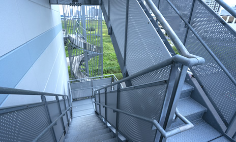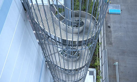 園児たちのことを考え、非常階段とともに避難用の滑り臺が設(shè)置されています。