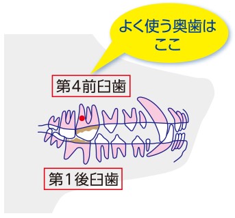 食べ物を噛む奧歯には、汚れや歯垢が多く溜まります。特に上顎(うわあご)の第4前臼歯と、下顎(したあご)の第1後臼歯を重點(diǎn)的にケアしましょう。