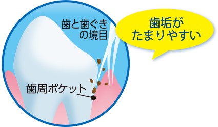 奧歯の歯と歯ぐきの境目や、歯周ポケットには汚れが殘りがちで、歯垢ができやすくなります。この部分を念入りにケアしましょう。