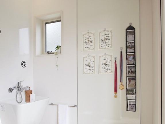 キッズの頑張りの証は、きちんと見える形で殘してあげたいもの。引き出しに眠らせてしまいがちな賞狀やメダル、好きな選手のポスターやサインなどを飾ることができる、マグネットが付くホワイトボードです。パパから戦術を習ったり、家族の伝言板に使うこともできます。
