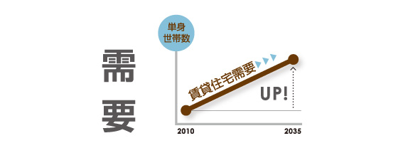 人口が減少する中で、世帯數の減少はわずかであり、単身世帯を中心に賃貸住宅の需要はしばらく続きます。
