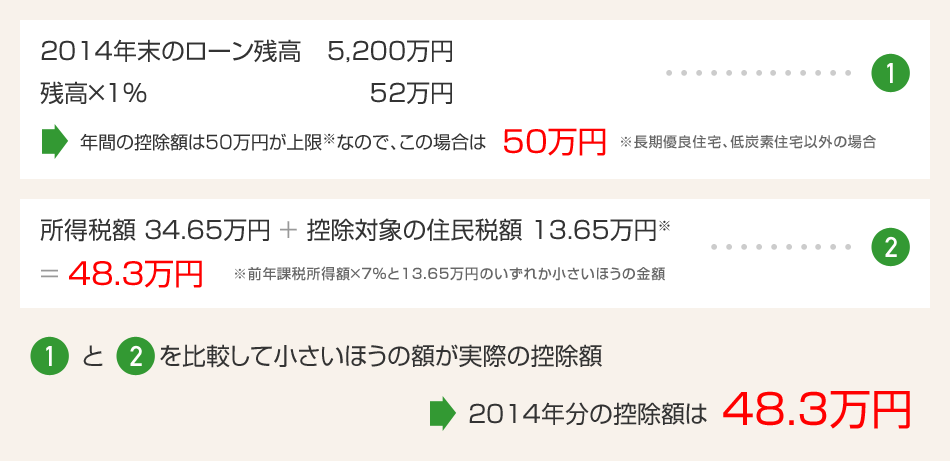 住宅ローン殘高が2014年の年末で、5,200萬円となる場合の控除額の計算方法