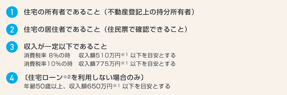 住宅ローンの利用なしでも申請(qǐng)可。ただし年齢や収入の制限あり