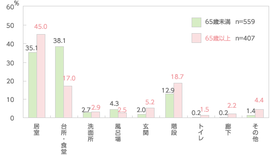 高齢者の事故発生場所(屋內)