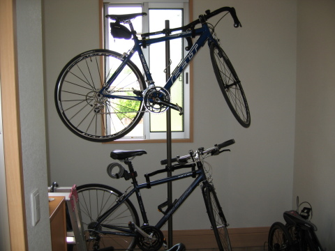 現在は??子供が生まれてロードに乗る機會がないのと、前を折りたたみ自転車(ダホン プレスト等)や、ベビーカー三輪車が占拠しています。