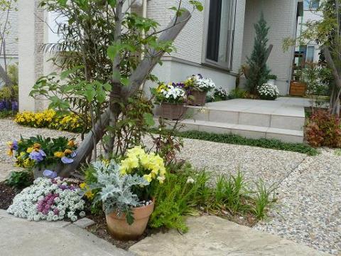 我家は大和ハウスさんの2代目の家ですが、最初に購入した建売は、北東に玄関が位置し、隣家があり朝日の射すのもちょっとの間と、暗いイメージがありました。諸般の事情あり、同じ土地に立替えましたが、駐車場の関係で今度は北向きの玄関!!!、でも何とか花のある玄関にしたいと無い知恵を絞り、大和ハウスさんにも相談し、また町中、特に新興団地の玄関先を車越しに覗いていろいろと參考にさせていただきました。この集大成が自慢できる我が家の玄関です。