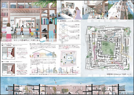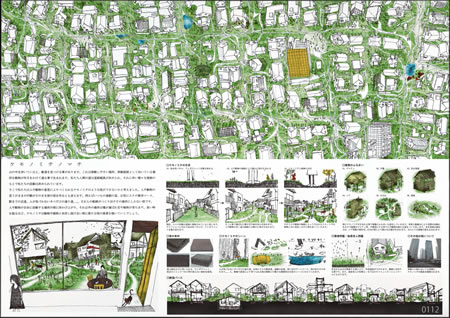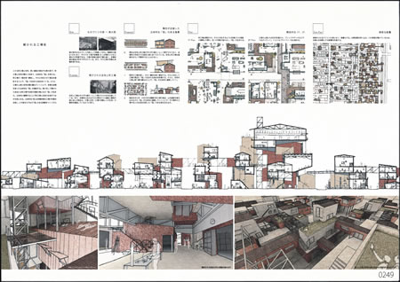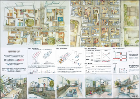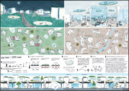 テーマに素直に応えている提案。絵も非常に上手いが、二次元的な感じがする。この街を実現するために支えるものは何か。この先の展開がどうなるのかをもっと聞きたかった。