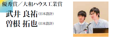 大和ハウス工業賞は、1次審査通過7作品の中から、公開2次審査のプレゼンテーションと質疑応答を通して、審査委員とは獨立したかたちで大和ハウス工業が1作品を選出する賞。