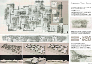 2次審査に殘った7案はどれもが、何を「過渡期」ととらえるかについて興味深い指摘があっただけでなく、何を課題ととらえるかが明確でした。最優秀の「Fragments of Secret Garden」は、今や堅固になりすぎた家の境界をもう一度緩くしようとする提案ですが、それに対しての直接的な回答內容以上に、シークエンシャルな実體験的視點とシンボリカルな俯瞰的視點を融合させようとする建築的奮闘が感じられたのが印象的でした。