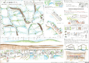入選 連なる屋根の下で、-農地を継承し、用水路を生む郊外住宅の提案-