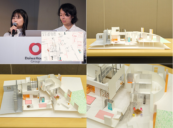 「大和ハウス工業賞」を授與するにあたり、大和ハウス工業のさまざまな設計部門の6名で審査を行いましたがそうした中で、今回は「あまのじゃくなエレメントたち」を選定しました。7つのエレメントのデザインには、提案者の実體験が反映されています。たとえば「不規則な階段」は山や神社の參道を登る際の、不規則な踏面や蹴上げ。「落とし穴のある玄関」では歩きスマホをしながら帰宅した時につまづいた経験など。それらを家と人が相互に働きかけるエレメントとした提案は、家と人の関係が希薄だという切実な問題意識を、よい意味で馬鹿馬鹿しく軽やかに建築に落とし込んでいると感じました。