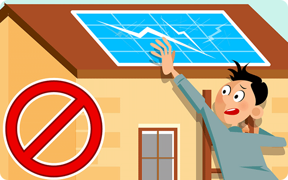 太陽光発電パネルは、破損した場合でも発電を継続している場合があり、感電の恐れもあります。破損した太陽光発電パネルには、素手で觸らないようにご注意ください。