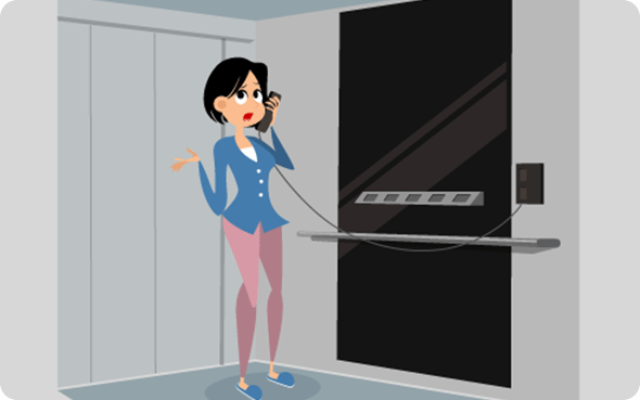 またエレベーター使用中に停電になったら、バッテリー運転により下方階に到著後にドアが開くかどうかメーカーの取扱説明書よりご確認ください。