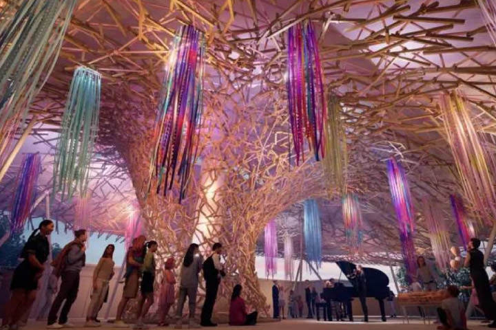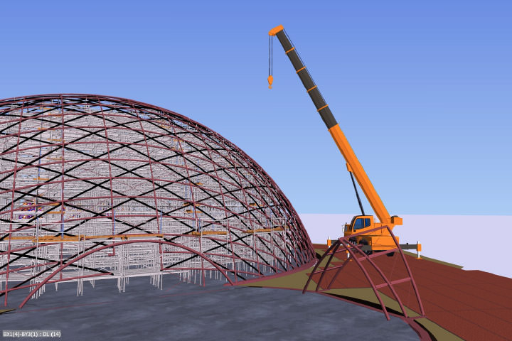 球體上の各棟を竹、紙、炭素繊維とプラスティックの複合材など異なる素材で施工する建築物です。BIMの活用により、難易度の高い設計?施工を可能にしています。