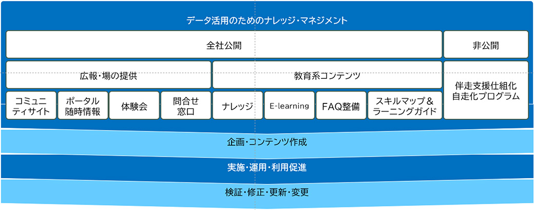 これまで行ってきた伴走支援活動から得られたノウハウや、現場での取り組み結果を社內事例として積極的に発信していくことで、問題意識を持っている現場の社員にデータ活用を考えてみるきっかけを提供しています。ナレッジポータルからの発信だけでなく、社內事例を題材に実踐レベルのeラーニングを公開したり、未経験者に體験會の場を設定するなど「知る機會」を意図的に創りこんでいくことでデータ活用に興味を持ち、取り組み始めた現場が目に見えて増加傾向にあります。