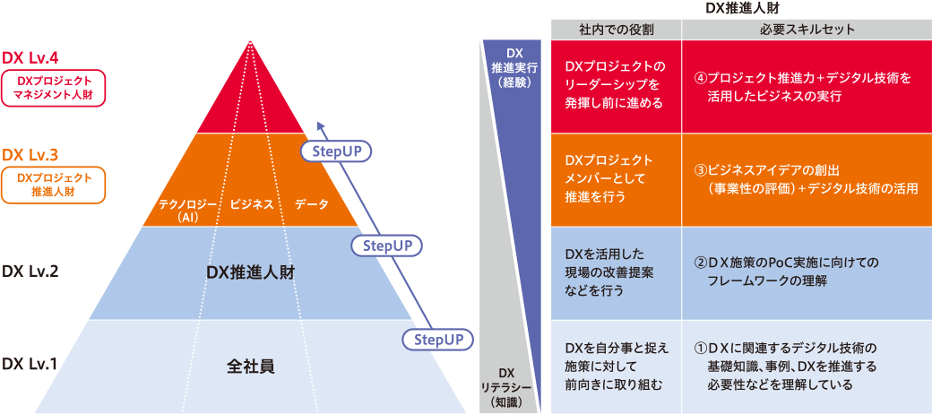 図1:デジタル技術を活用できるDX人財の體系図