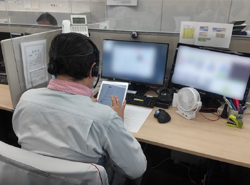 物流倉(cāng)庫(kù)においてタブレット端末で現(xiàn)地スタッフとの通話から館內(nèi)資料閲覧、入退館管理などをペーパーレスでスマートに行うことができる受付アプリを內(nèi)製開発しました。