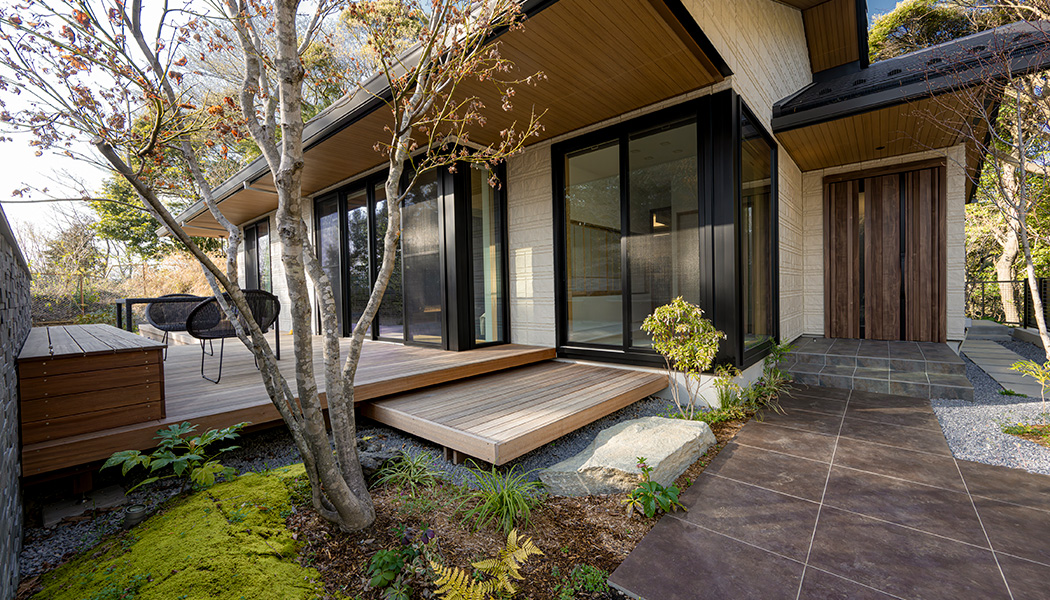 外観:庭と建物が一體化し、自然に寄り添うおおらかな佇まいに。