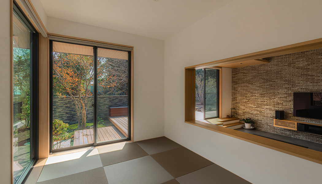 和室:室內窓を設けた和室は、隣室と“分けつつつながる”程よい距離感に。リビングに朝日を屆ける効果も擔っている。