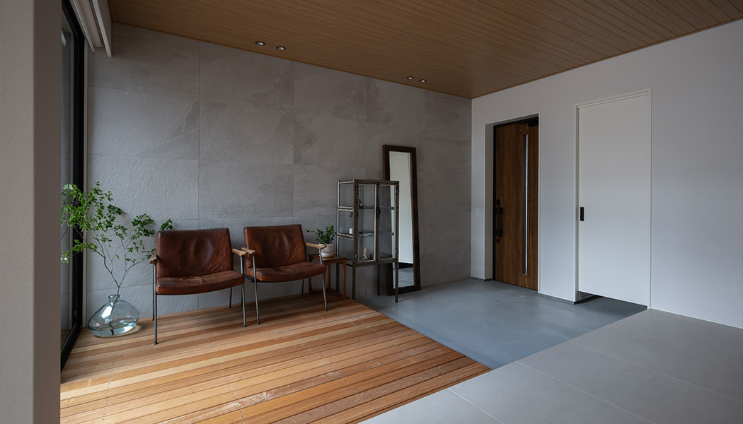 玄関:LDKと一體にして空間の広がりをつくり、土間には多様な用途が生まれる。