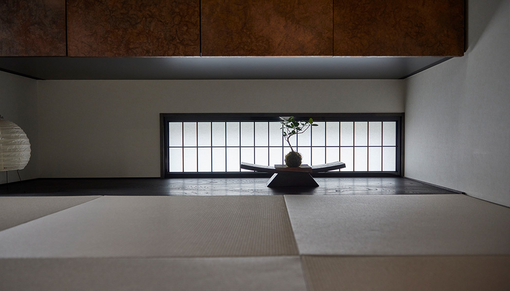 和室:やわらかな北の光を取り入れた畳の間は、視線を低く抑えた靜けさをデザイン。