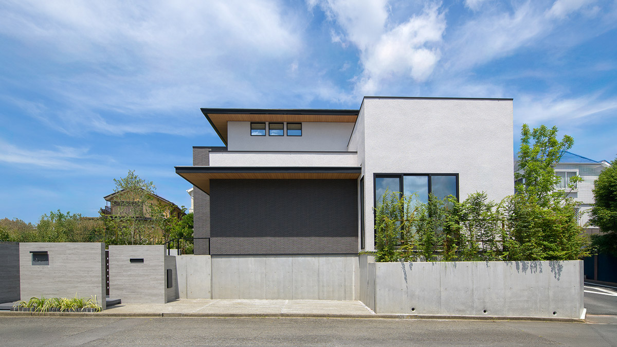 軒?フラットルーフの水平ラインにより複雑な平面形狀を単純化し「凜とした佇まい」を演出。