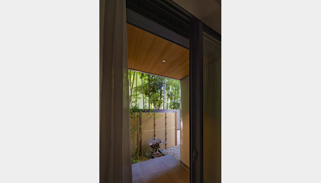坪庭:隣地の竹を借景し和的な坪庭を造る。日本らしさをここに。