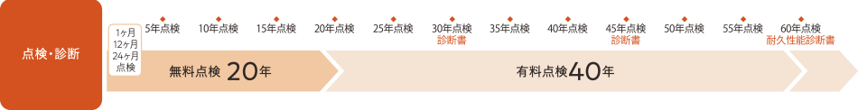 1ヶ月目から20年目までの無(wú)料點(diǎn)検など、早めの対処でメンテナンスコストの軽減につなげます。