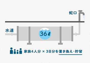 斷水時でも、家族4人分の飲料水を3日分確保できます。床下空間に設置可能で、居住スペースを狹めません。