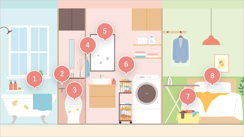 浴室や洗面所、トイレなど水回りには數(shù)多くの「名もなき家事」が潛んでいます。洗濯物を洗う前には、裏返しに脫いだ衣類や丸まったままの靴下をひっくり返す作業(yè)があり、お風(fēng)呂や洗面臺(tái)は見える汚れだけでなく、排水溝に溜まった髪の毛を取り除き、排水溝の中まで掃除する必要があります。見えない家事ほど、一人に負(fù)擔(dān)が集中してしまっているのです。