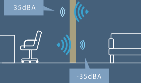 二重窓や靜音仕様の間仕切壁?ドア?換気扇を採用することで、日常の生活音を図書館と同等の靜けさ※まで減音。自分の聲を漏らさず機密情報の漏洩を防ぐとともに、周りからの音も抑えます。