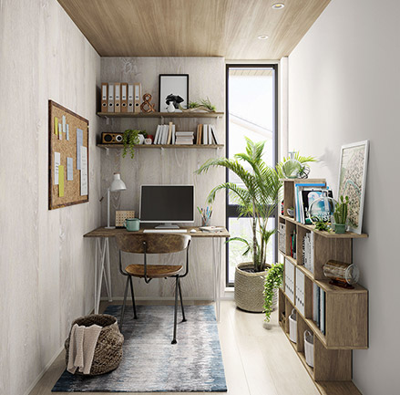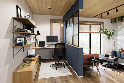 「家でもストレスなく仕事に集中したい」「仕事と家事?育児を両立したい」。そんな想いに応え、普及が進む自宅でのテレワーク空間を取り入れたプランです。さらに、インテリアや外観、間取りなどを自分好みにセレクトすることで、家で過ごす時間をより快適にできます。