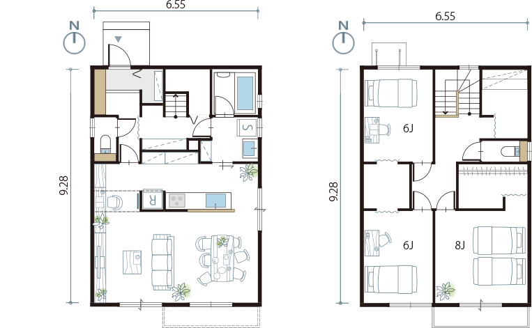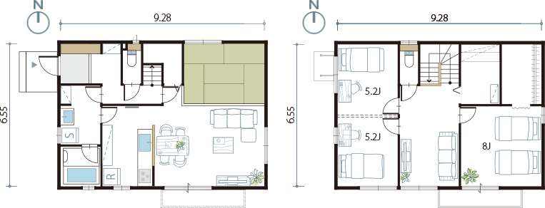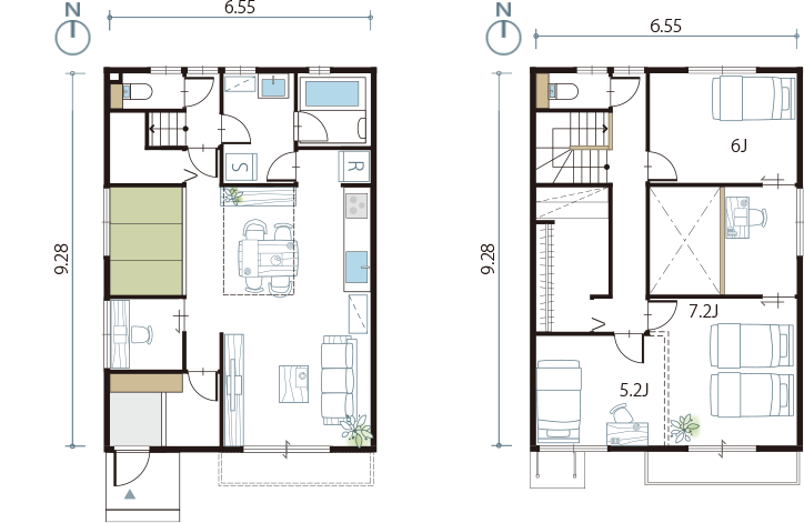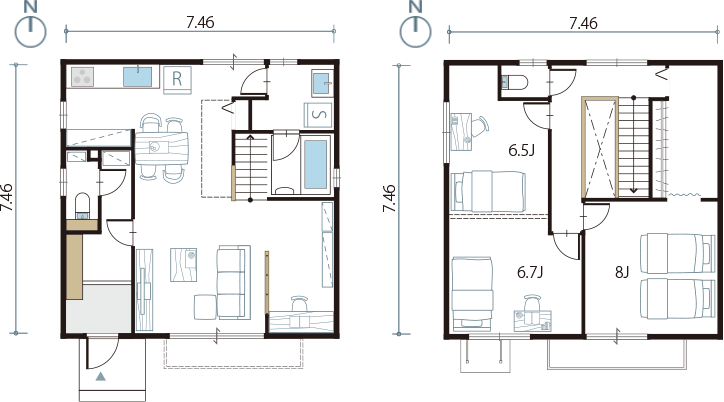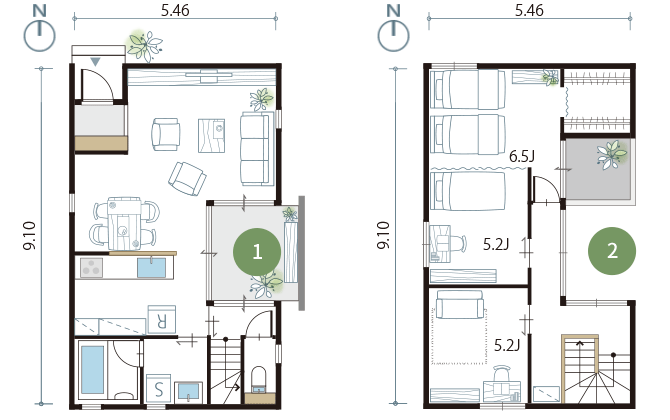 テレワーク空間が2カ所あるプランです。仕事に集中したい時は、1階の「プライベートタイプ」のテレワーク空間を使用。アイデア出し等気分を変えたいときは、2階の光あふれる開放的な空間へ移動。共働きや、お子さまのスタディーコーナーとしてテレワーク空間が2カ所必要な方にお勧めです。