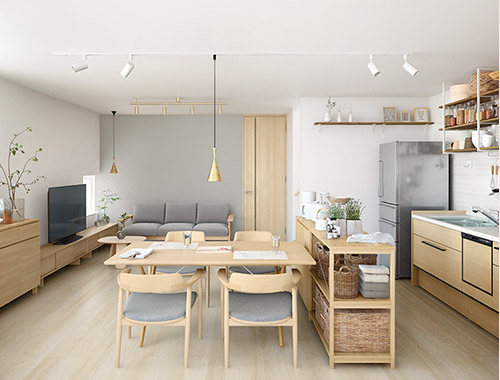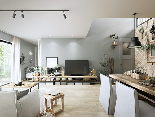 「家事シェア動線」を取り入れた間取りの工夫によって、片付けが苦手な方でも無理なく自然な片付けを実現。また、ゆるやかにつながる空間で家族の會話も弾みます。