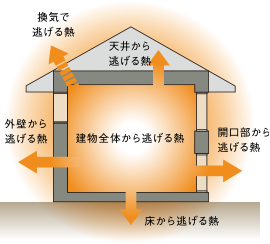 外壁、床、壁、天井、窓などから逃げる熱損失を表したもので、斷熱性能を測る數(shù)値です。値が小さいほど住まいの斷熱性能が優(yōu)れています。
